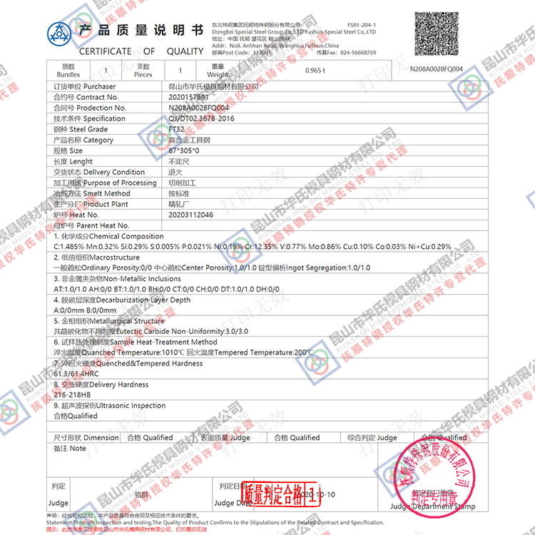 1、歡迎撥打冷作模具鋼 /熱作模具鋼 /塑料模具鋼/輥軋用鋼刃模具鋼/特殊用途模具鋼 /昆山市華氏模具鋼材有限公司