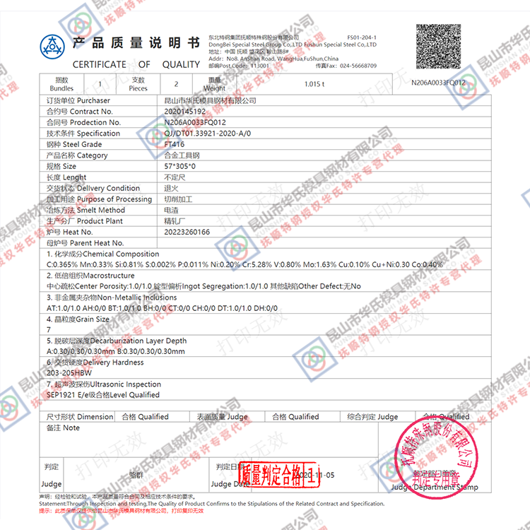 我司所出售的模具鋼產(chǎn)品,如果客戶在使用過程中發(fā)現(xiàn)有質(zhì)量異議,可以向我公司提出處理質(zhì)量問題申請(qǐng),因?yàn)槲宜臼侨A東地區(qū)的代理商,如果有質(zhì)量問題,特鋼集團(tuán)在貴司地區(qū)的售后服務(wù)人員會(huì)親自前往處理,并最終給出處理意見,然后由我公司根據(jù)特鋼集團(tuán)的售后人員的處理意見進(jìn)行處理。保證客戶在我公司采購的鋼材買的放心用著舒心!